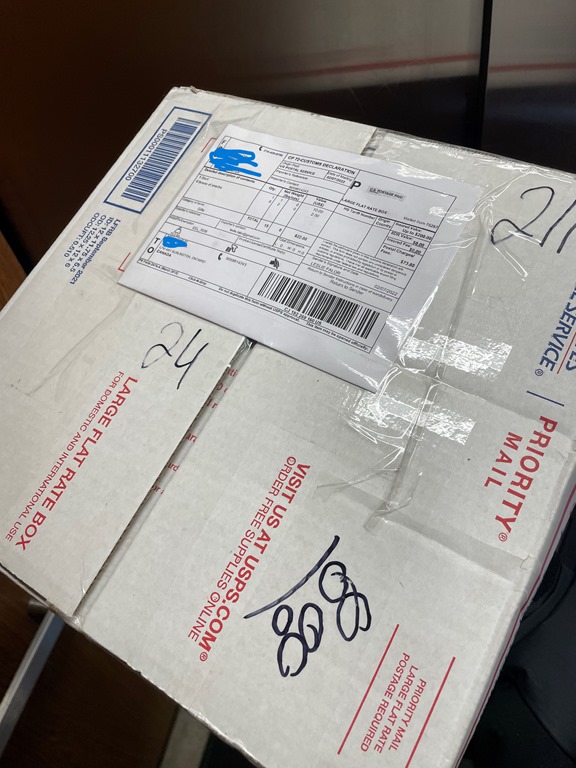 As I rode the elevator back down to street level, I took a picture of the package and sent it to Leslie. I did not open the box until we were on a video call together, and she could see my reactions.