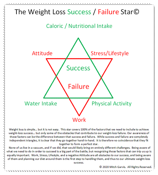 I still think the message behind the star is correct. There are many ways to fail, but three main keys to success are solid: Caloric/Nutritional Intake, Water Intake, and Physical Activity. Without these three, success is unlikely.