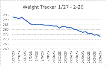 I told Leslie last night that this morning I would weigh less than 274 lbs., and I was right. In fact, I beat it by a whole pound. Who knows? Maybe it is because according to my comparative chart to my 2020 race for my best weight, in that attempt I knew there was a tremendous day-over-day loss… or maybe it is simply because I have been sticking to my program, not cheating at all, and I had a really good bowel movement yesterday afternoon. More on that later, if you can believe it. Even dropping 1.6 lbs. from yesterday, I still lost ground on my comparison, based on a 2.6 lbs. drop from then. No matter… in the race to my best weight from 2017, I am now just over half a pound away… if I do not achieve it tomorrow, then it will certainly be by Tuesday.